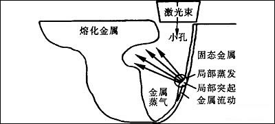在焊接大厚度鋁合金時,傳統(tǒng)的焊接方法根本不可能單道焊透,而激光深熔焊時形成大深度的匙孔,發(fā)生匙孔效應(yīng),則可以得到實(shí)現(xiàn)。圖1為激光焊接時的小孔形狀。圖2為激光深熔焊示意圖。