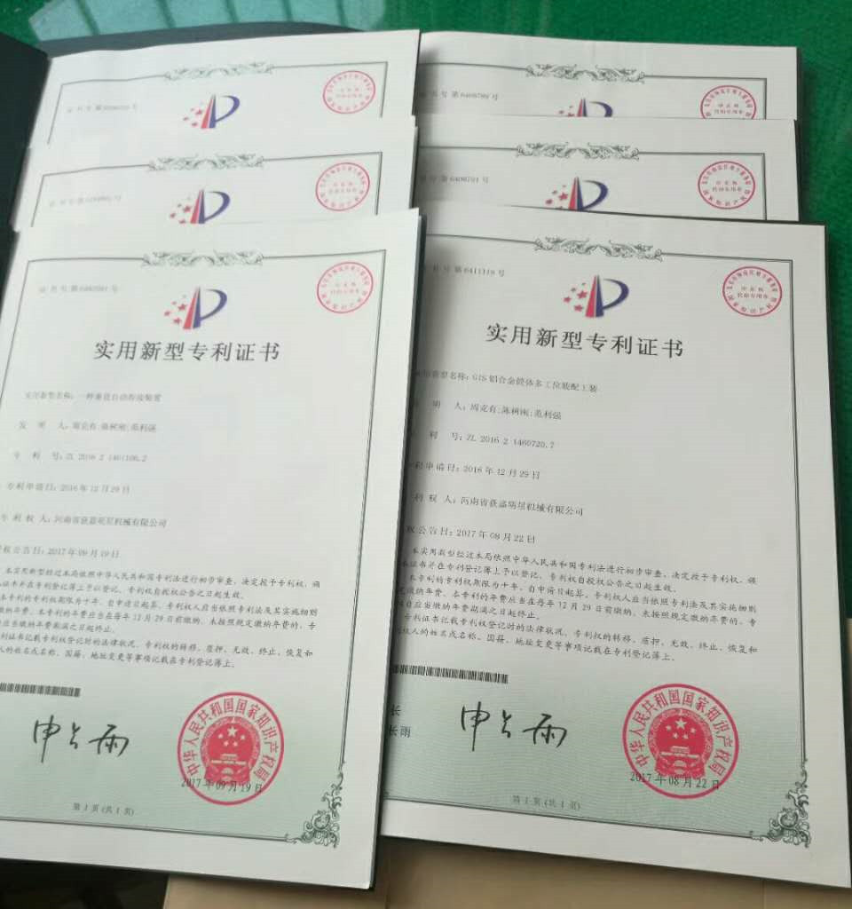 ? ? ?**近,我公司榮獲六項實用新型專利證書: